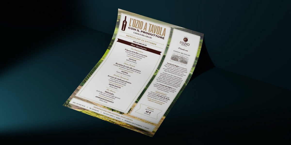La cena si svolge presso L’OZIO Ristora in Via Ugo Ojetti, 2, Roma