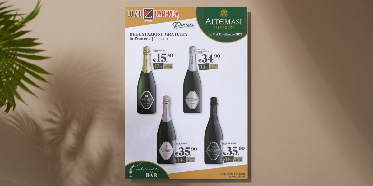 con una DEGUSTAZIONE GRATUITA in Enoteca (1° piano), con una selezione di bottiglie Altemasi Trento Doc  a prezzi speciali,