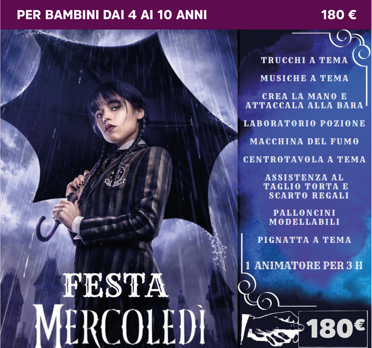 Per tutti gli altri temi, segui le indicazioni come sulla locandina. Non hai trovato il tema che ti piace? E’ possibile richiedere un TEMA PERSONALIZZATO! Mercoledì Addams